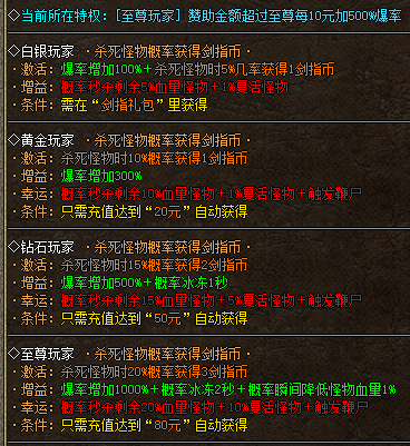 2.特权共分为四个档次:白银玩家.黄金玩家.钻石玩家.至尊玩家
